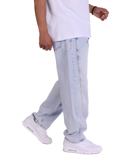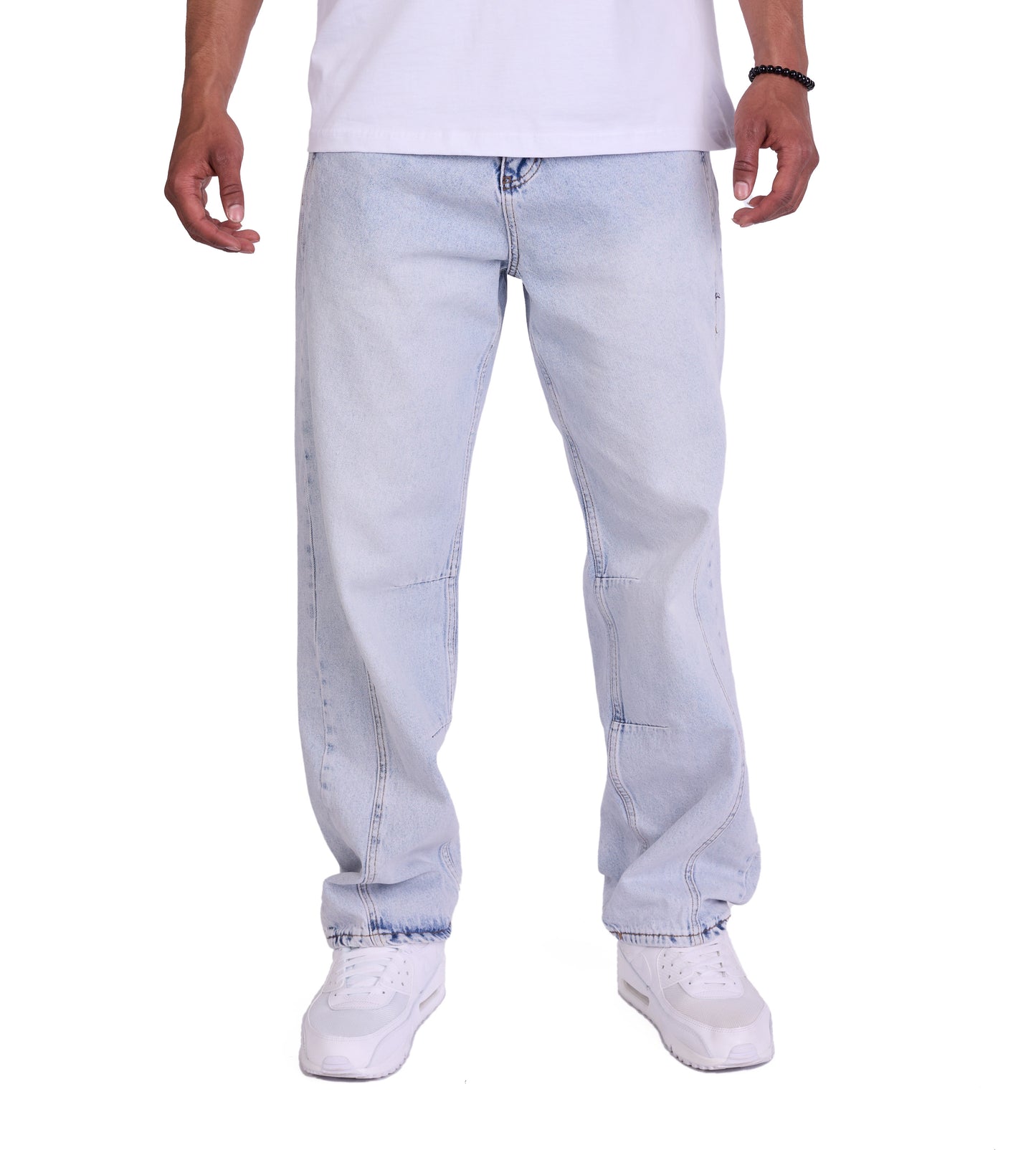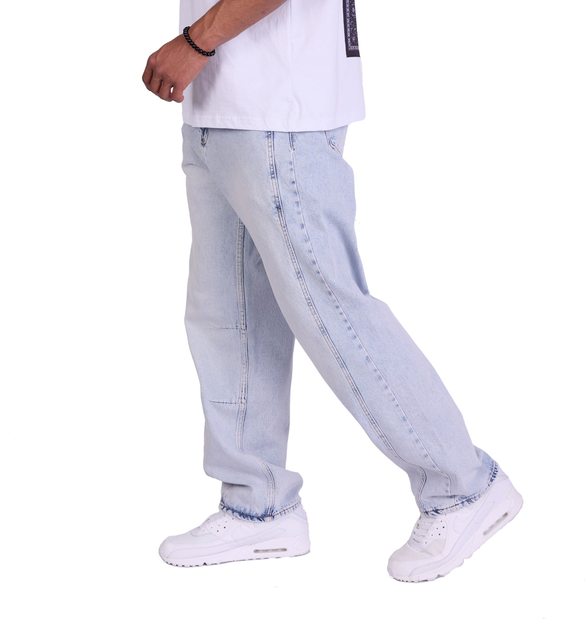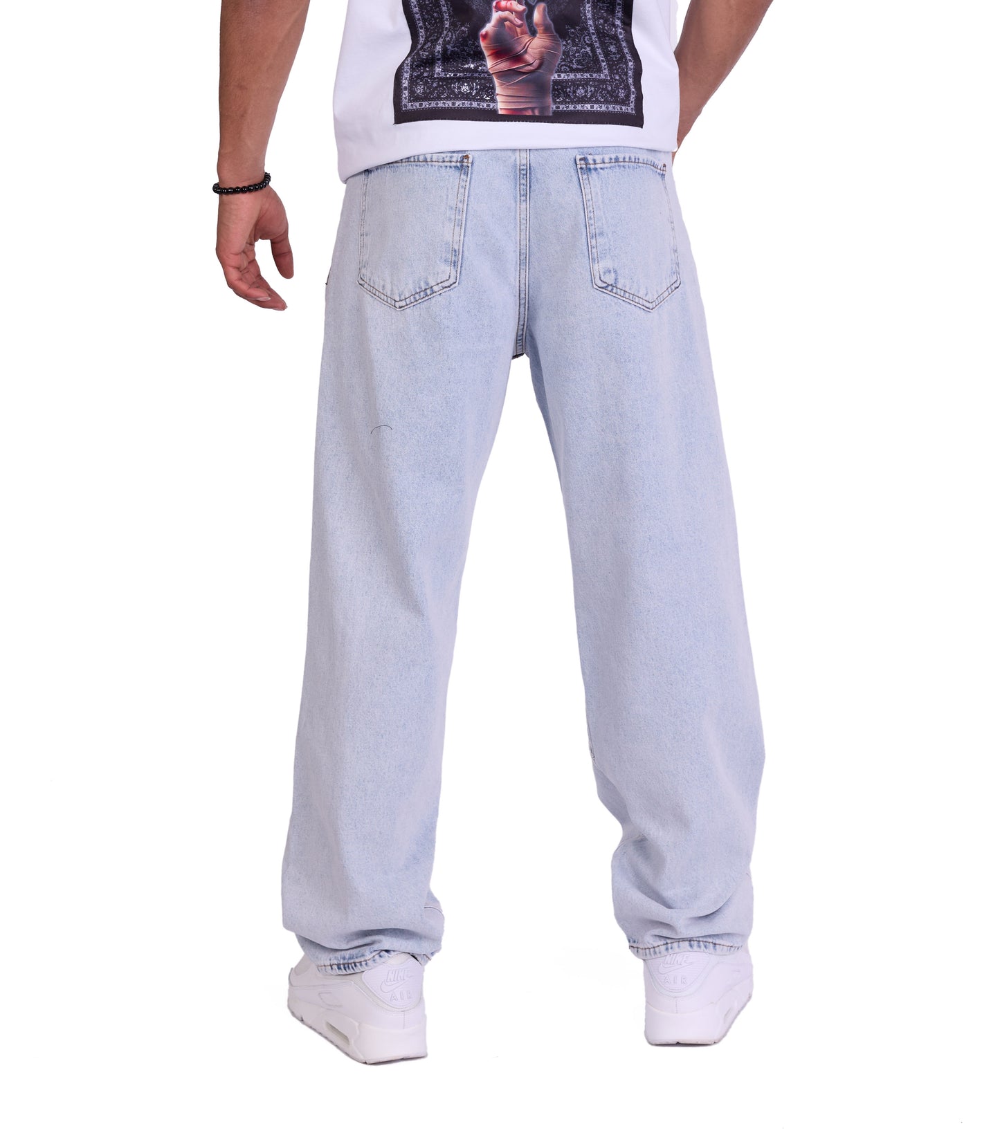 Entdecke den ultimativen lässigen Look mit unserer ausgefallenen Herren Baggy Jeans. Diese Hose in Hellblau und Schwarz besticht durch einzigartige Details und einen bequemen Schnitt, der deinen individuellen Style unterstreicht.
