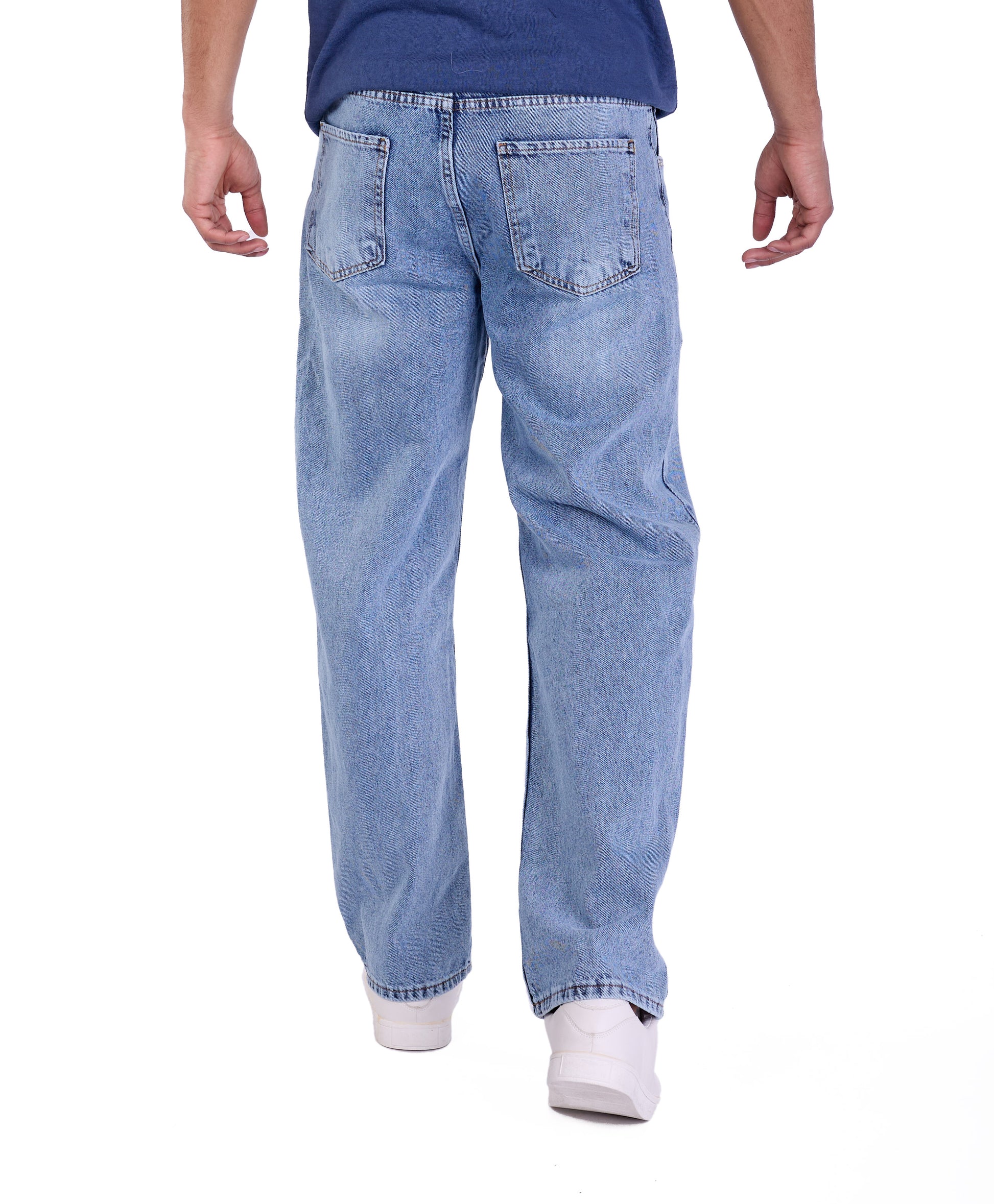 Der "90s Skater" Look (Hellblau): Kombiniere die hellblaue Jeans mit einem oversized gestreiften T-Shirt oder einem weiten Hoodie in Pastelltönen. Weiße Skateschuhe und eine Beanie runden diesen authentischen Retro-Style ab.