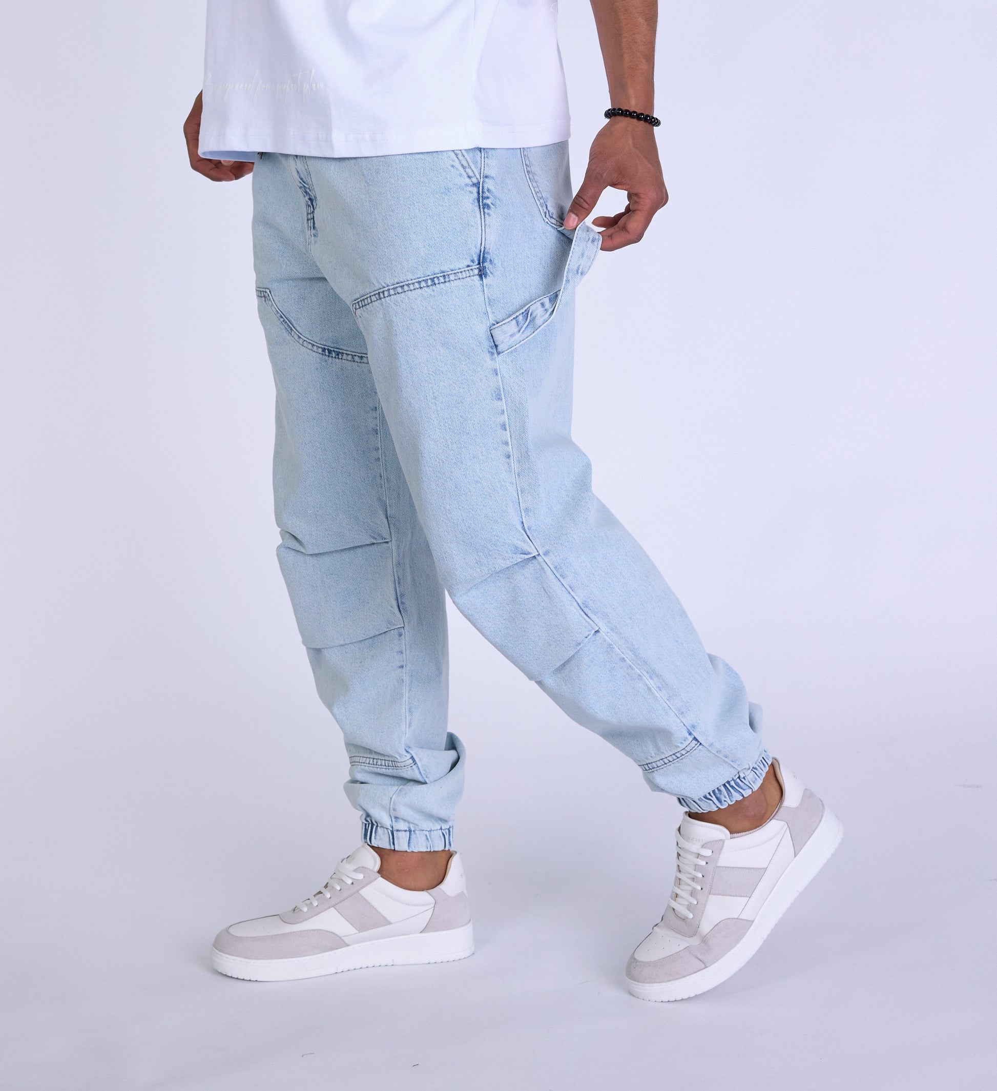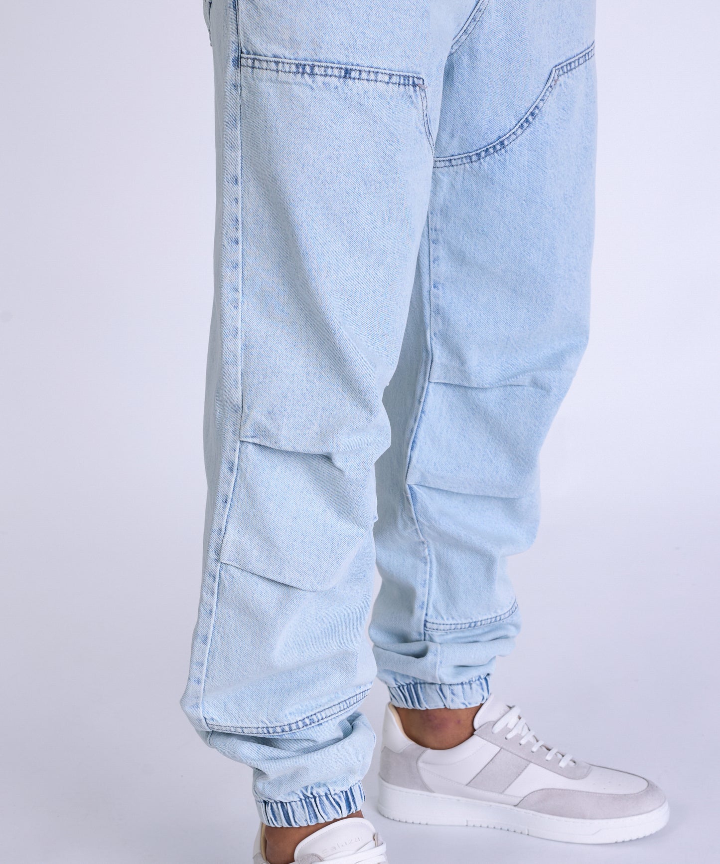 Erlebe ultimativen Komfort und lässigen Style mit unserer Loose-Fit Hell verwaschenen Jogger Jeans im angesagten Double Knee Style. Diese Jeans ist ein absolutes Must-Have für alle, die einen entspannten und zugleich trendbewussten Look lieben. Die helle Stone-Washed-Waschung verleiht der Jeans einen authentischen Vintage-Charakter, der jedes Outfit aufwertet.