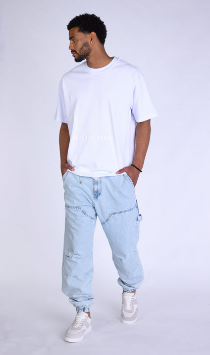 Der Loose-Fit Schnitt sorgt für eine bequeme Passform und maximale Bewegungsfreiheit, während der elastische Bund und die Beinabschlüsse im Jogger-Stil zusätzlichen Komfort bieten. Das markante Double Knee Design verleiht der Jeans einen robusten Worker-Look, der durch die praktische Hammerschlaufe noch verstärkt wird. So hast du dein Werkzeug immer griffbereit.
