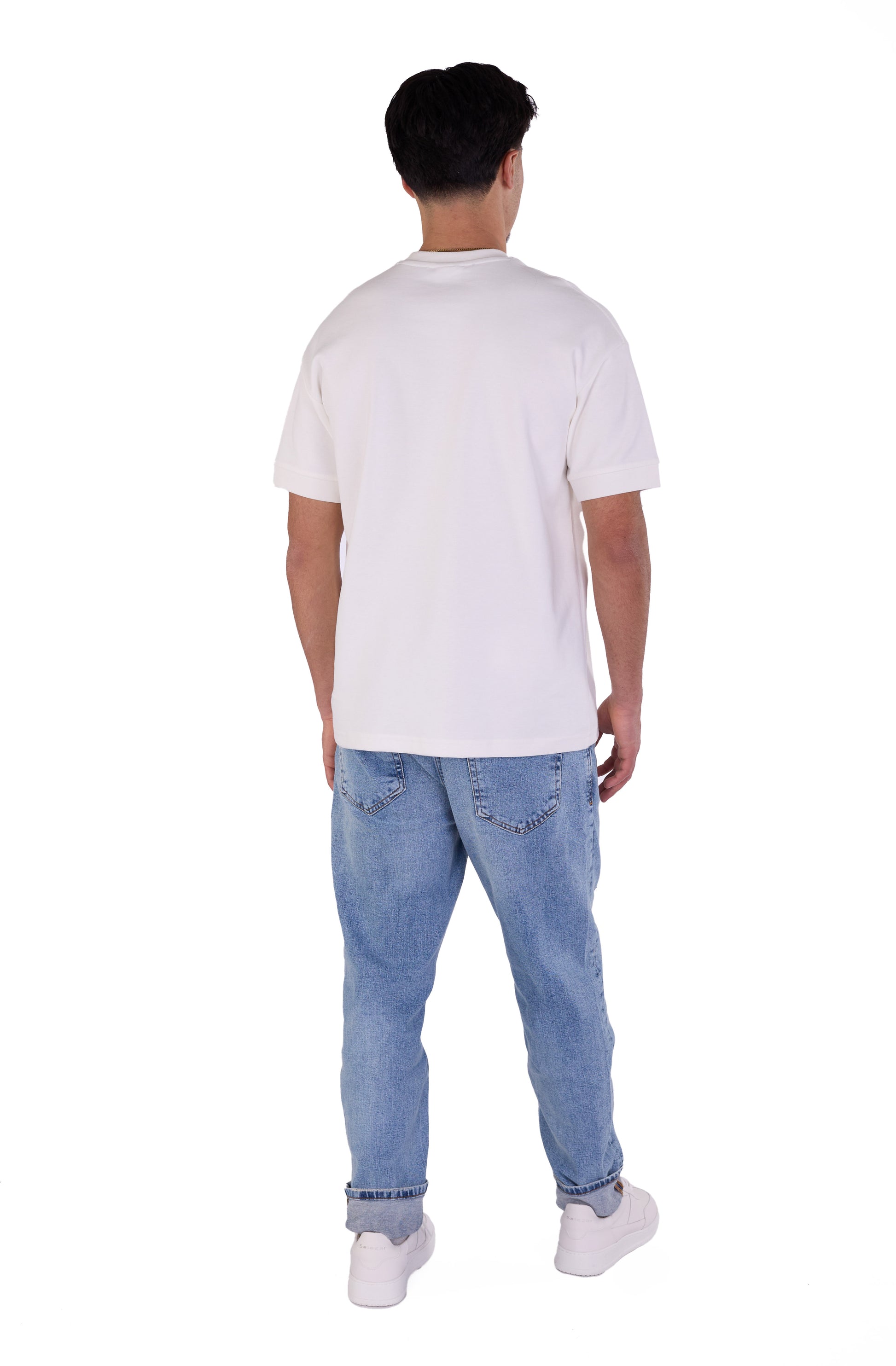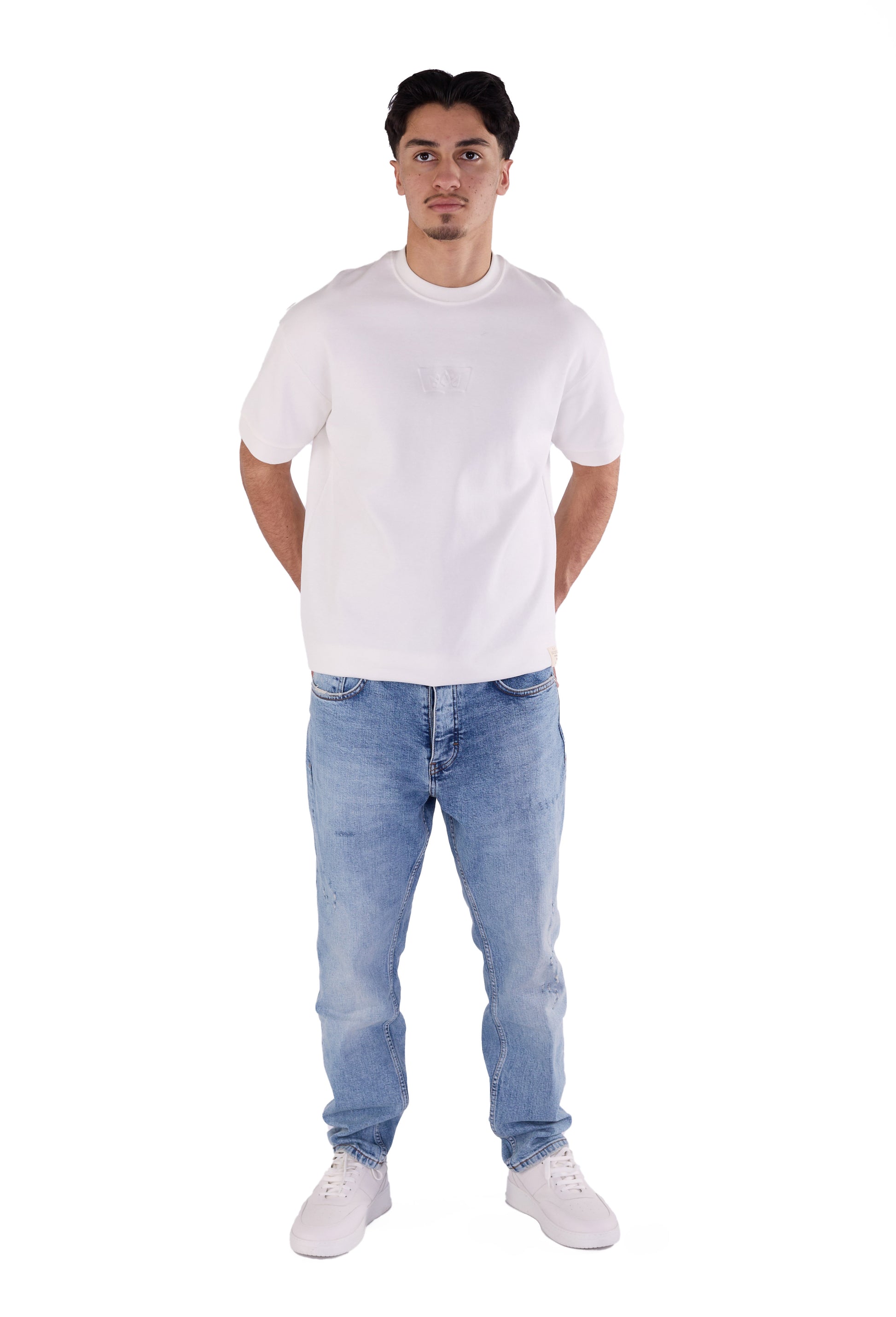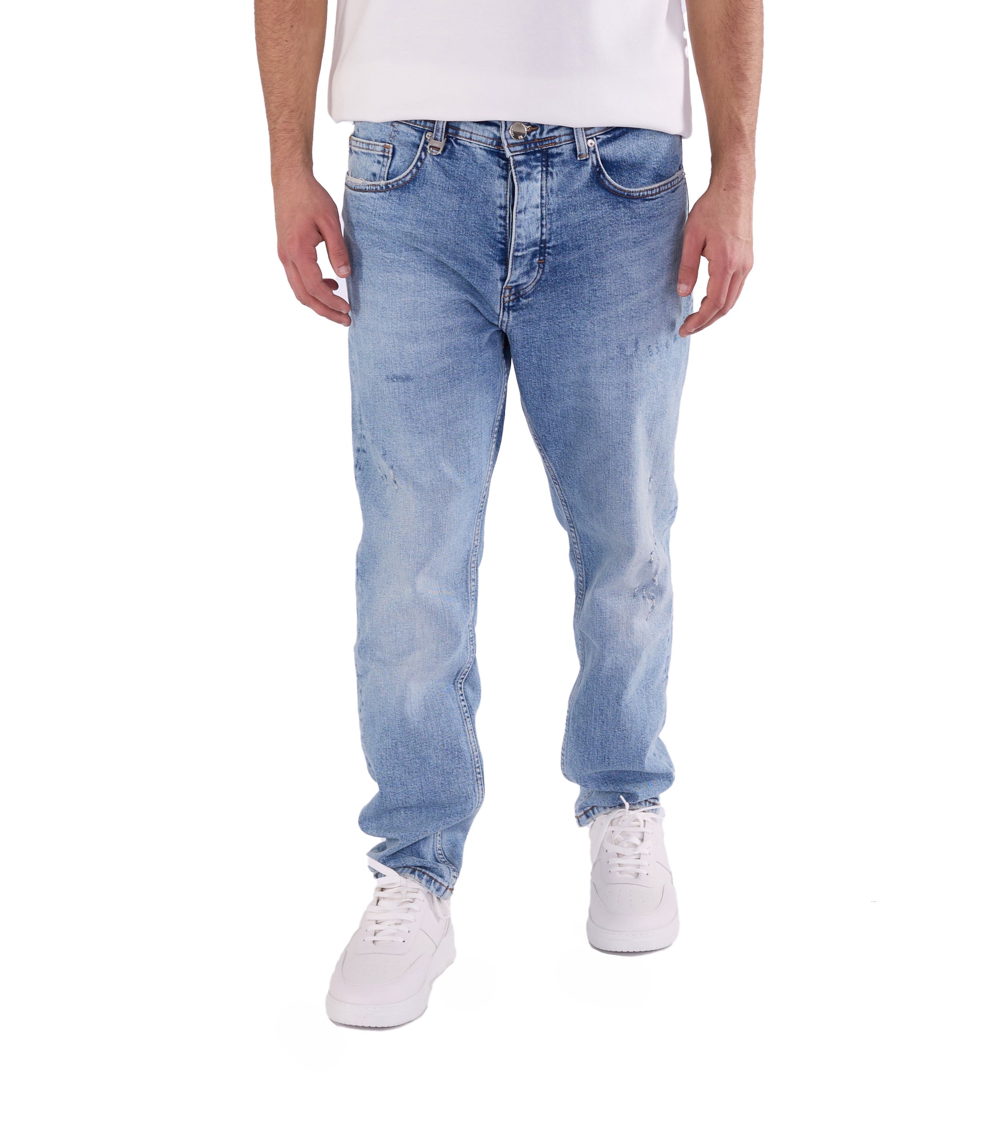 Die Herren-Boyfriend-Jeans ist in den Farben Sky Blue, Light Blue, Blue, Dark Blue und Schwarz erhältlich. Sie können aus den Größen 30, 31, 32, 33, 34 und 36 wählen. Unser Modell ist 1,85 m groß und wiegt 85 kg. Es trägt Größe W33/L32, was Ihnen als Größenhinweis dienen kann.