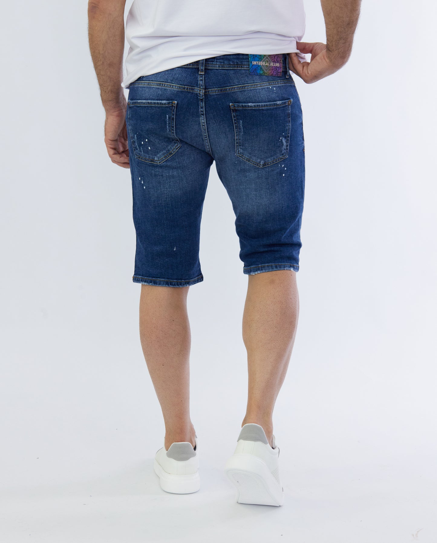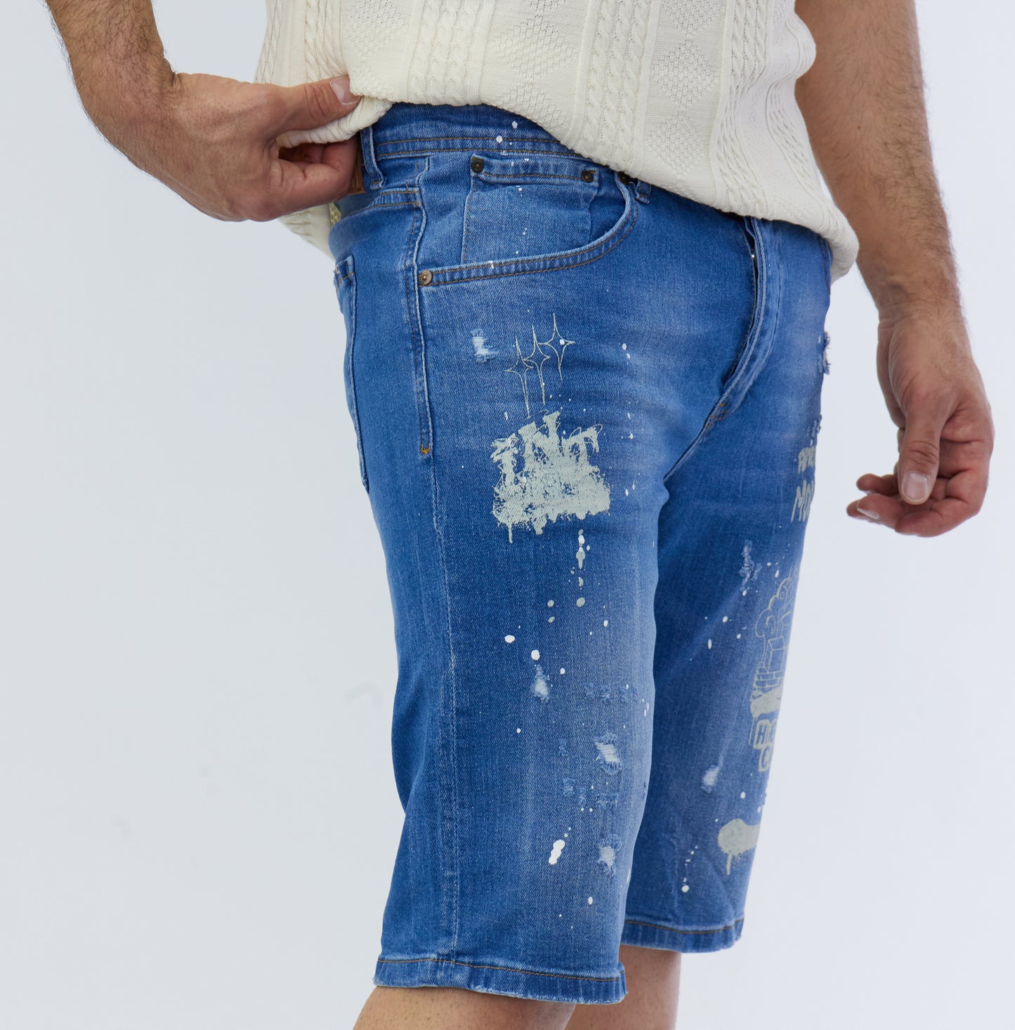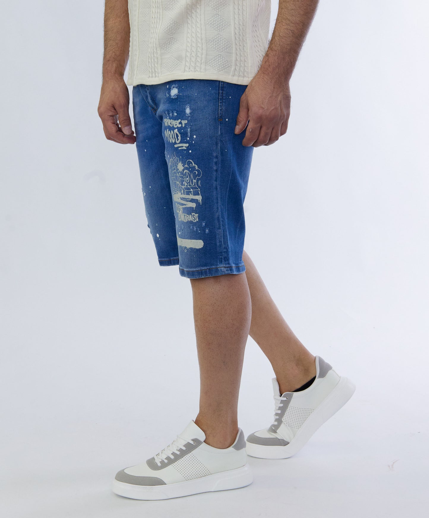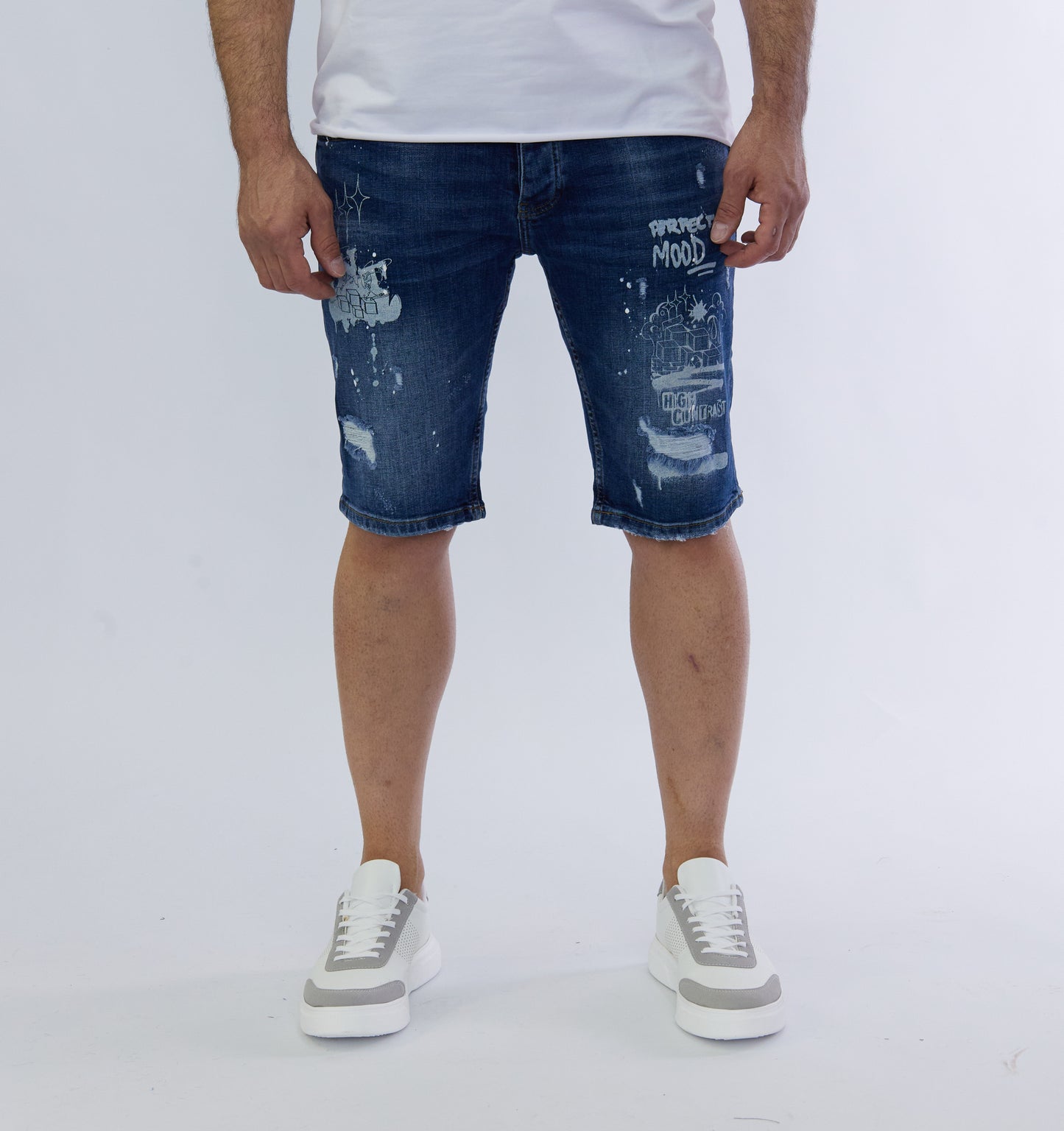 Herren Jeans Shorts in Blau - Destroyed Effekt & Used Look mit Print