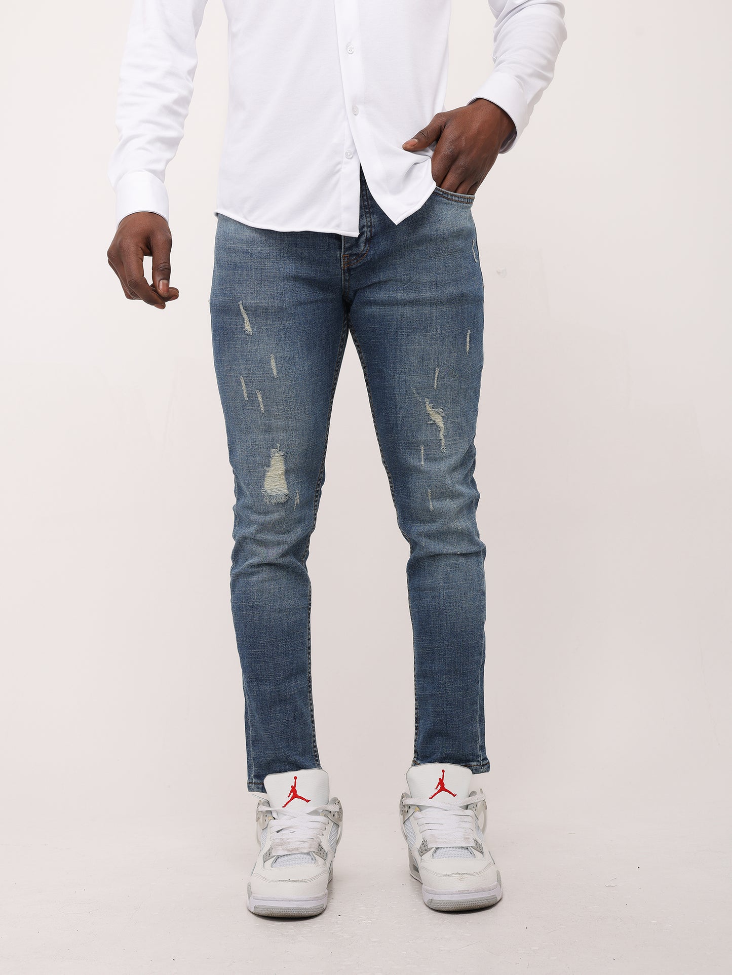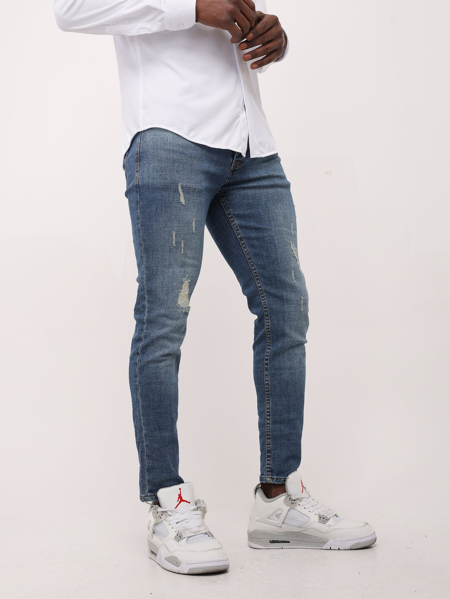 Herren Jeans Slim Fit, Destroyed Look, Modell 313, Blau
