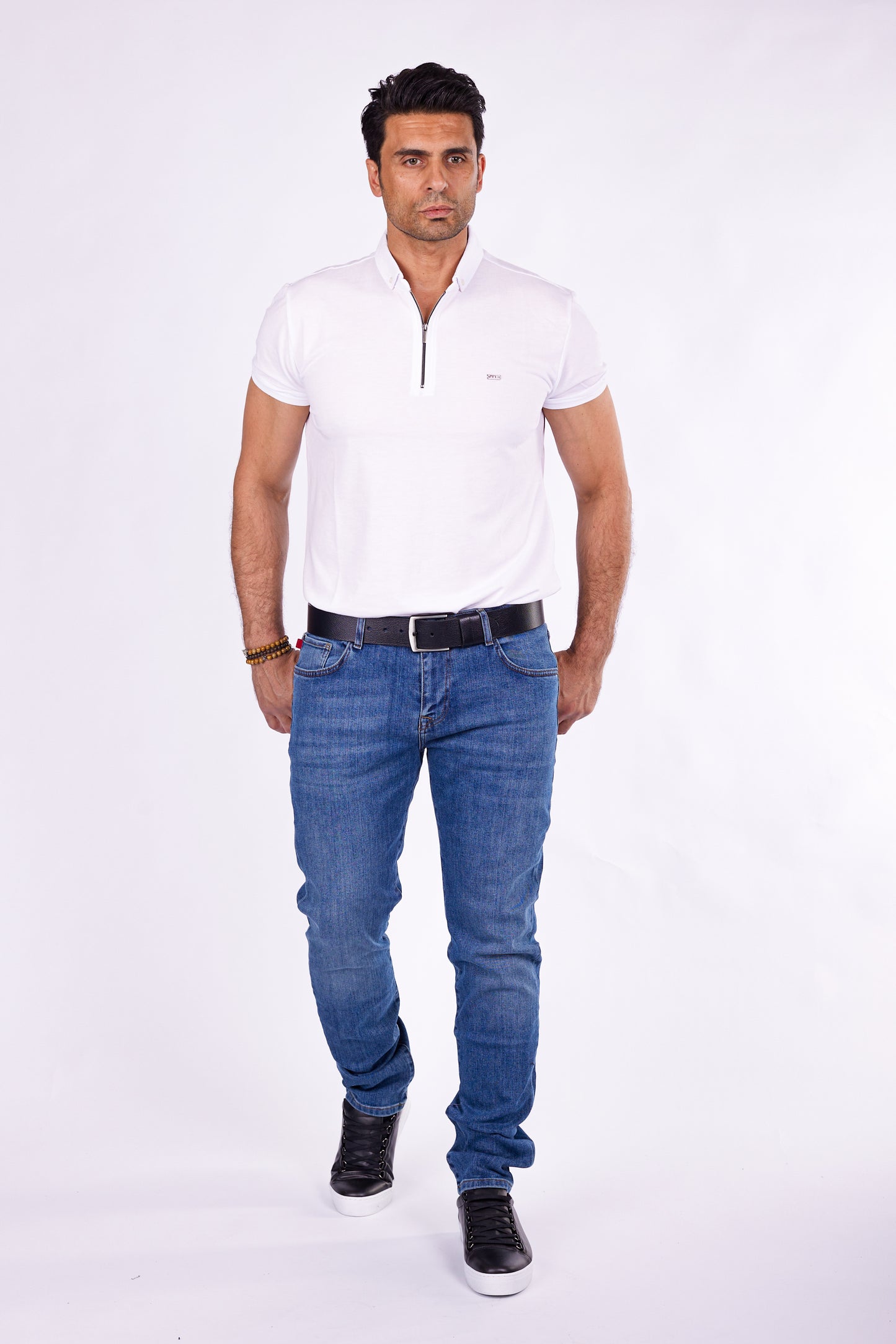 Herren Jeans Regular Fit, Stonewashed Look, Modell T3009, Blau