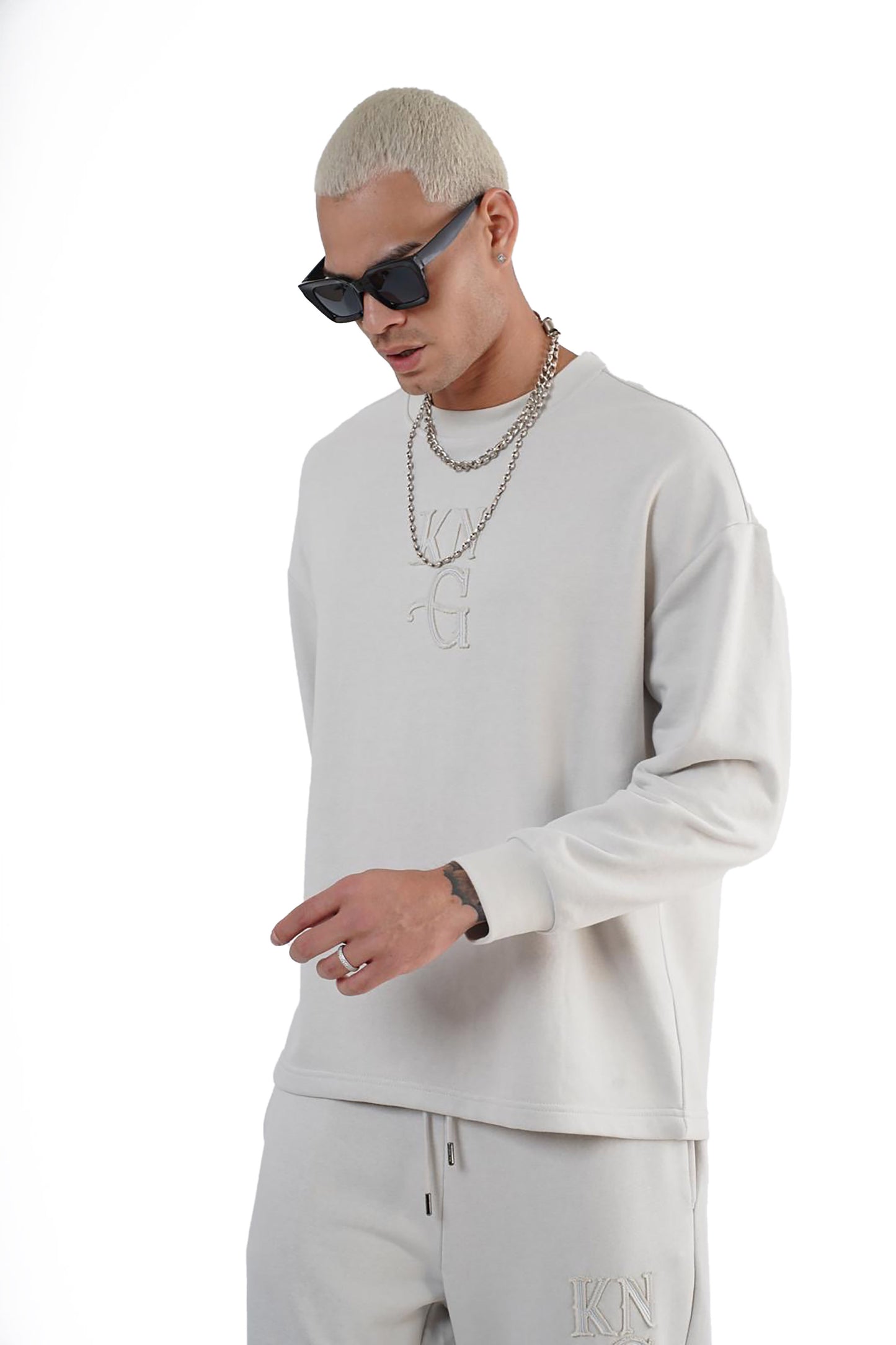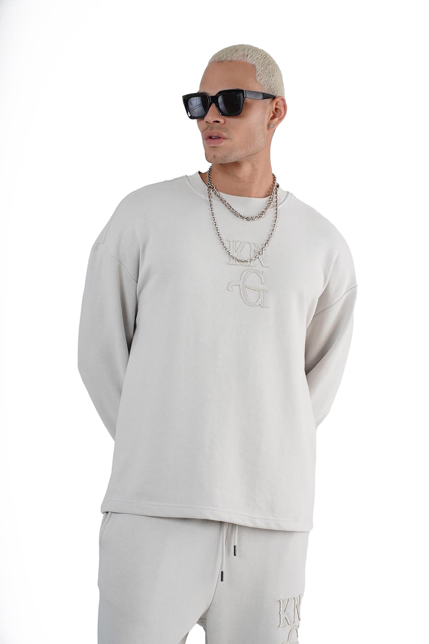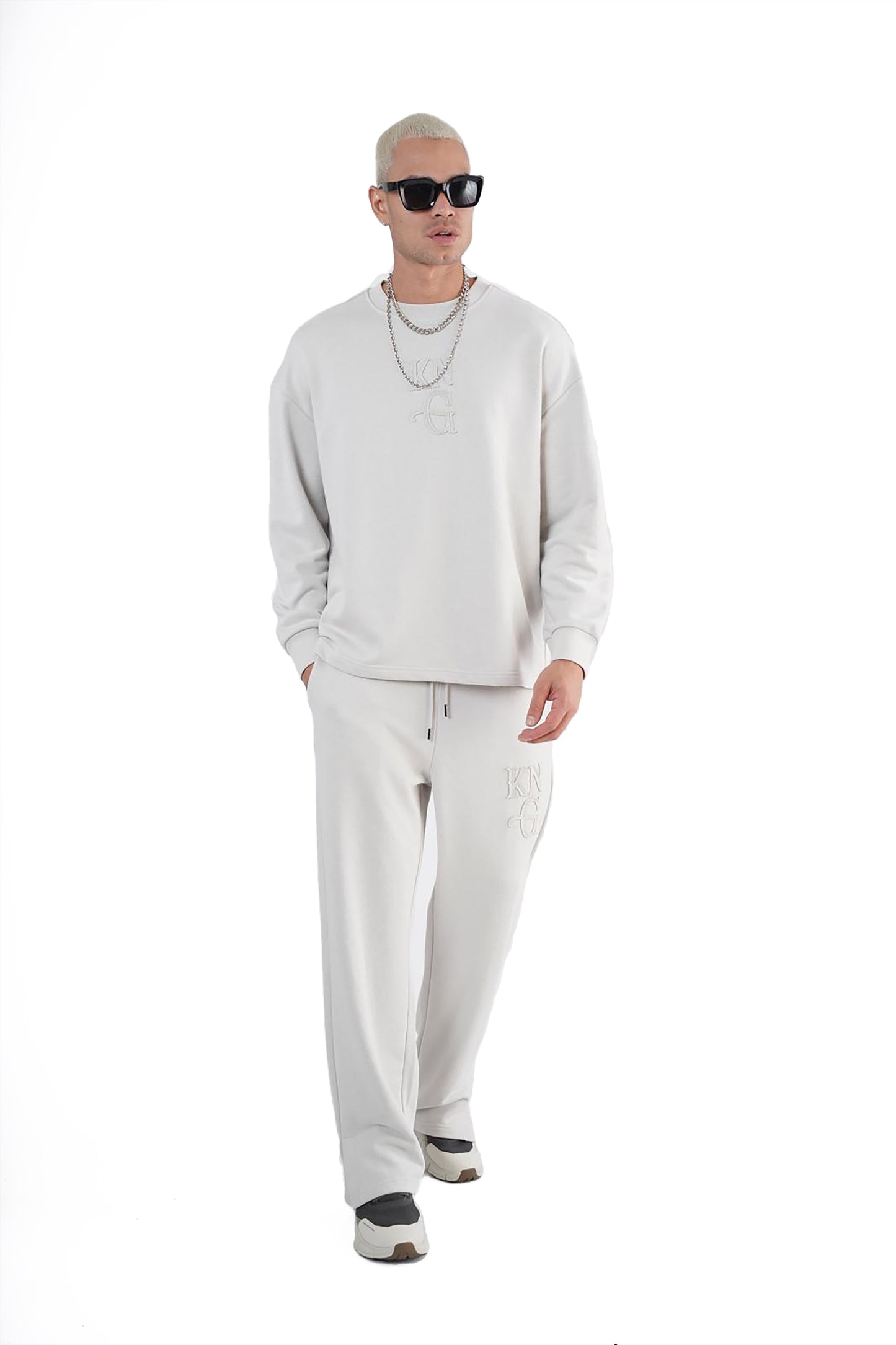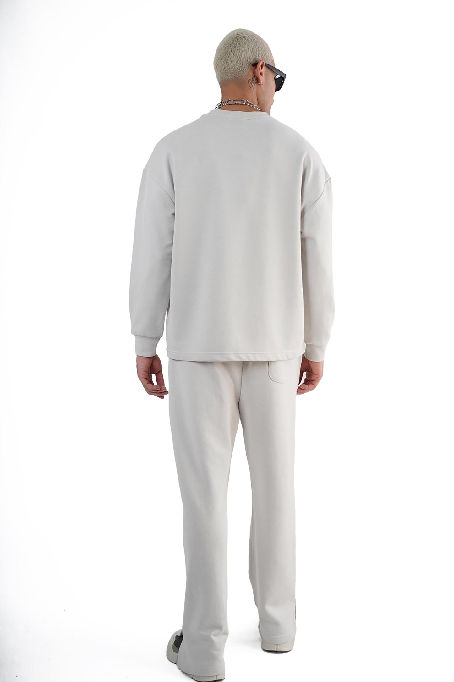 Herren Jogger Kombi Zweiteiler, Oversized Fit Freizeitanzug, Modell DQ KB374, Lichtgrau