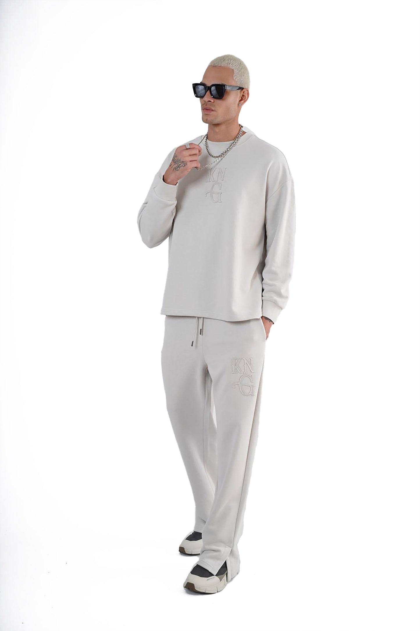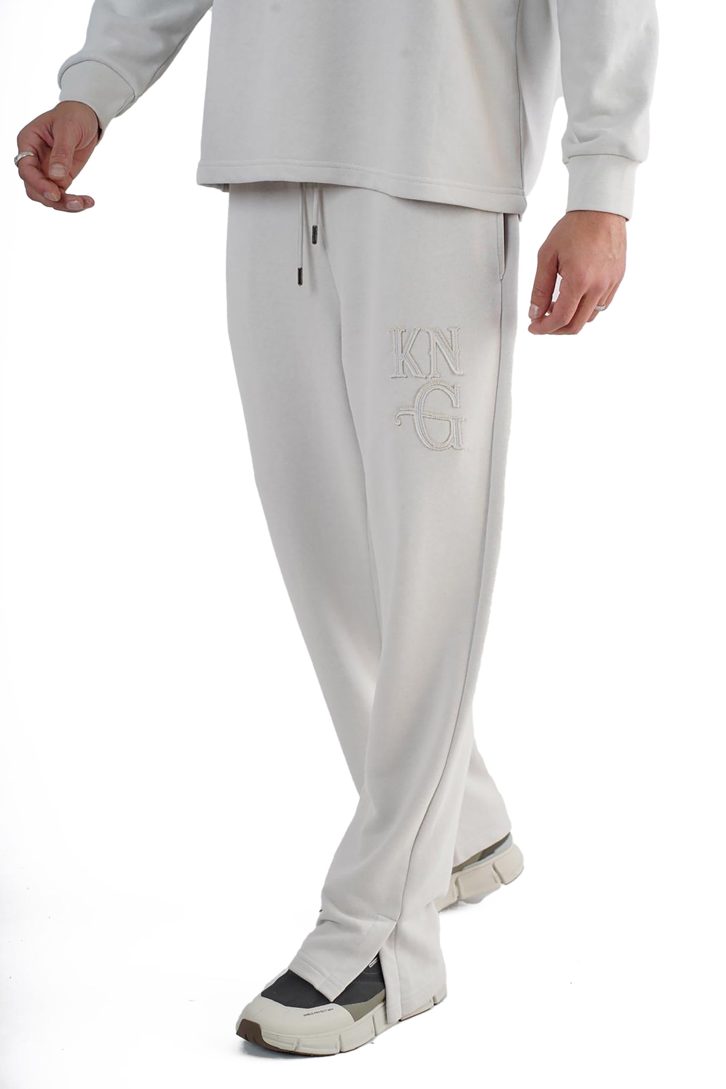 Dieser Freizeitanzug zeichnet sich durch seinen hohen Tragekomfort, seinen urbanen Style und seine Vielseitigkeit aus. Das hochwertige Materialgemisch und die sorgfältige Verarbeitung garantieren Langlebigkeit und ein angenehmes Tragegefühl. Die "KNG"-Stickerei und der Schlitz am Hosenbeinabschluss machen diesen Anzug zu einem echten Hingucker.