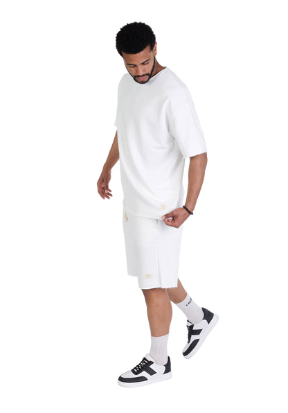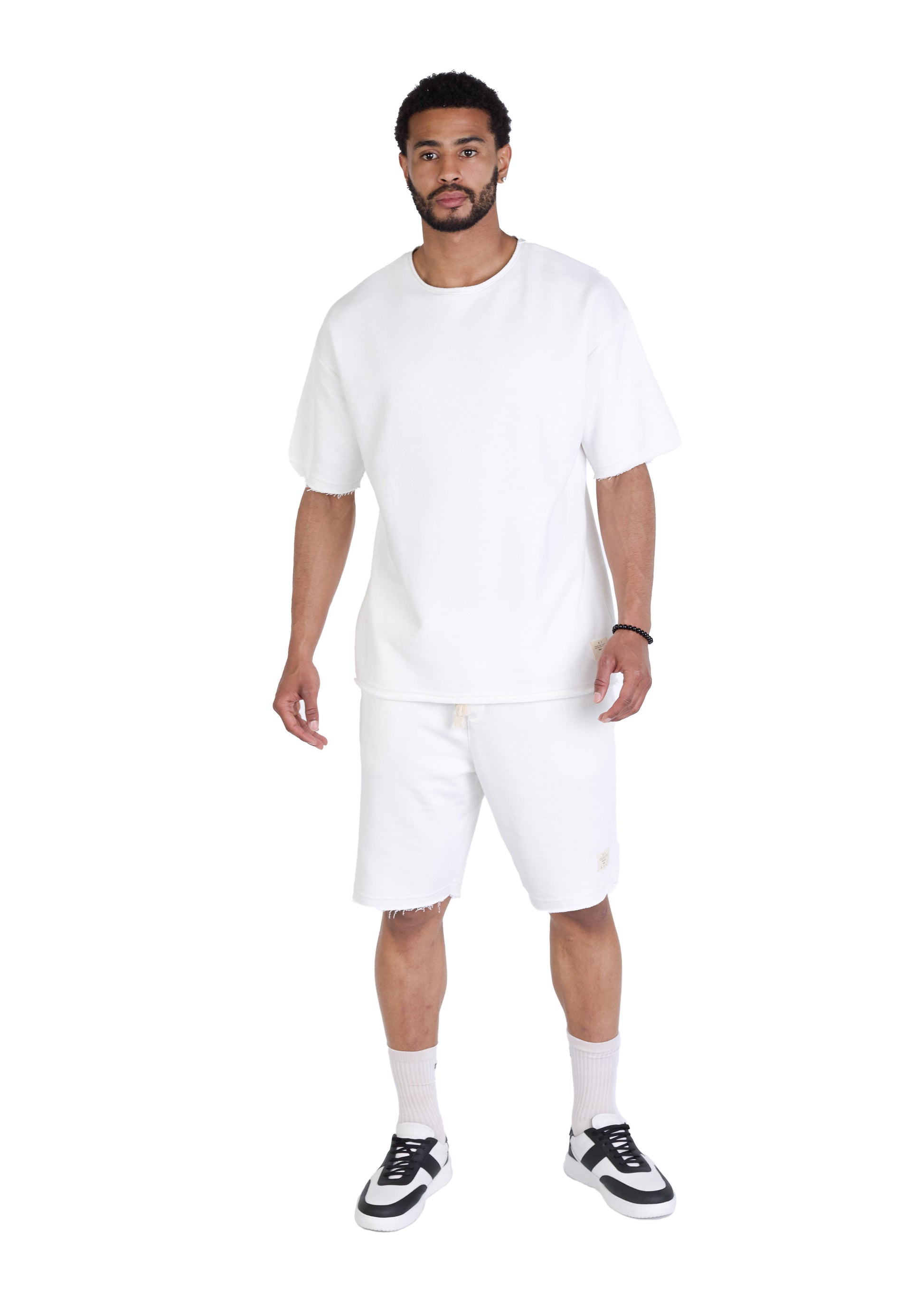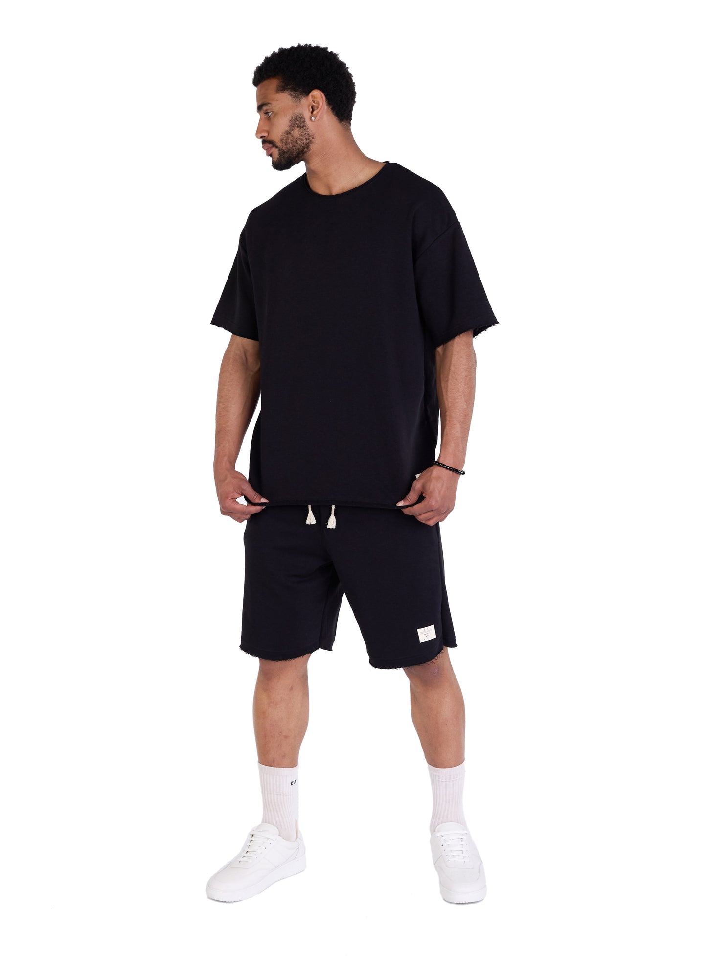 Setze ein modisches Statement mit diesem ausgefallenen 2 Teiler für Herren. Bestehend aus einem lässigen Oversized T-Shirt und einer bequemen Regular Fit Short, besticht dieses Set durch seine einzigartigen Details und den hohen Tragekomfort. Perfekt für individuelle Looks und entspannte Tage.