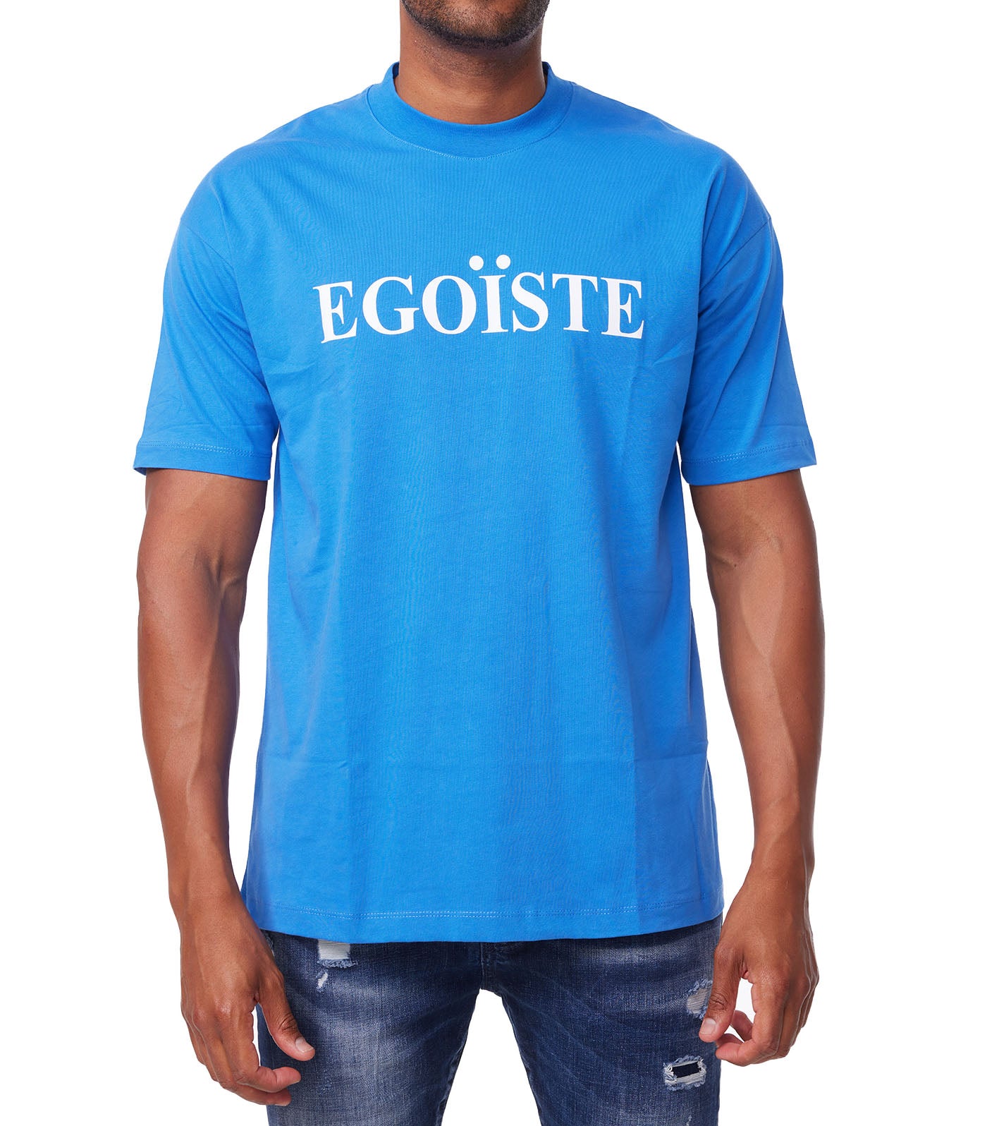 Herren T-Shirt, Oversize Fit, "EGOISTE" Druck auf der Vorderseite, Modell 1195, Blau
