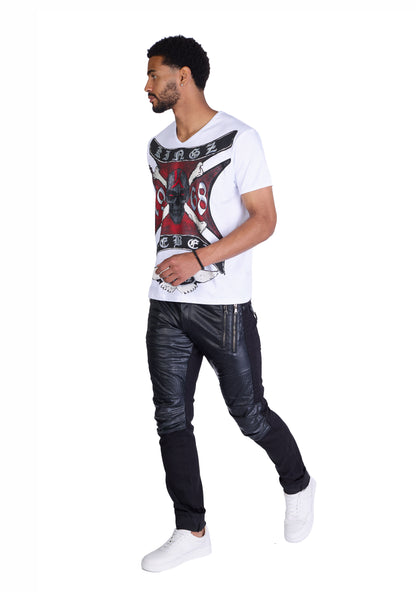 Setze ein starkes Statement mit diesem markanten Slim Fit T-Shirt von KINGZ. Der rockige Totenkopf-Print, veredelt mit funkelnden Strasssteinen, zieht alle Blicke auf sich und verleiht deinem Look eine rebellische und zugleich luxuriöse Note.
