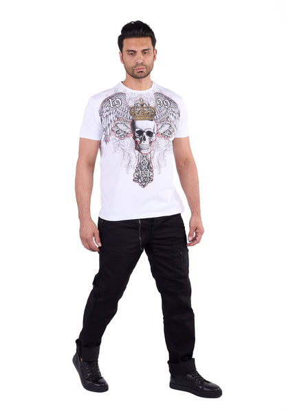Herren Slim Fit T-Shirt mit extravagantem Totenkopf-Design