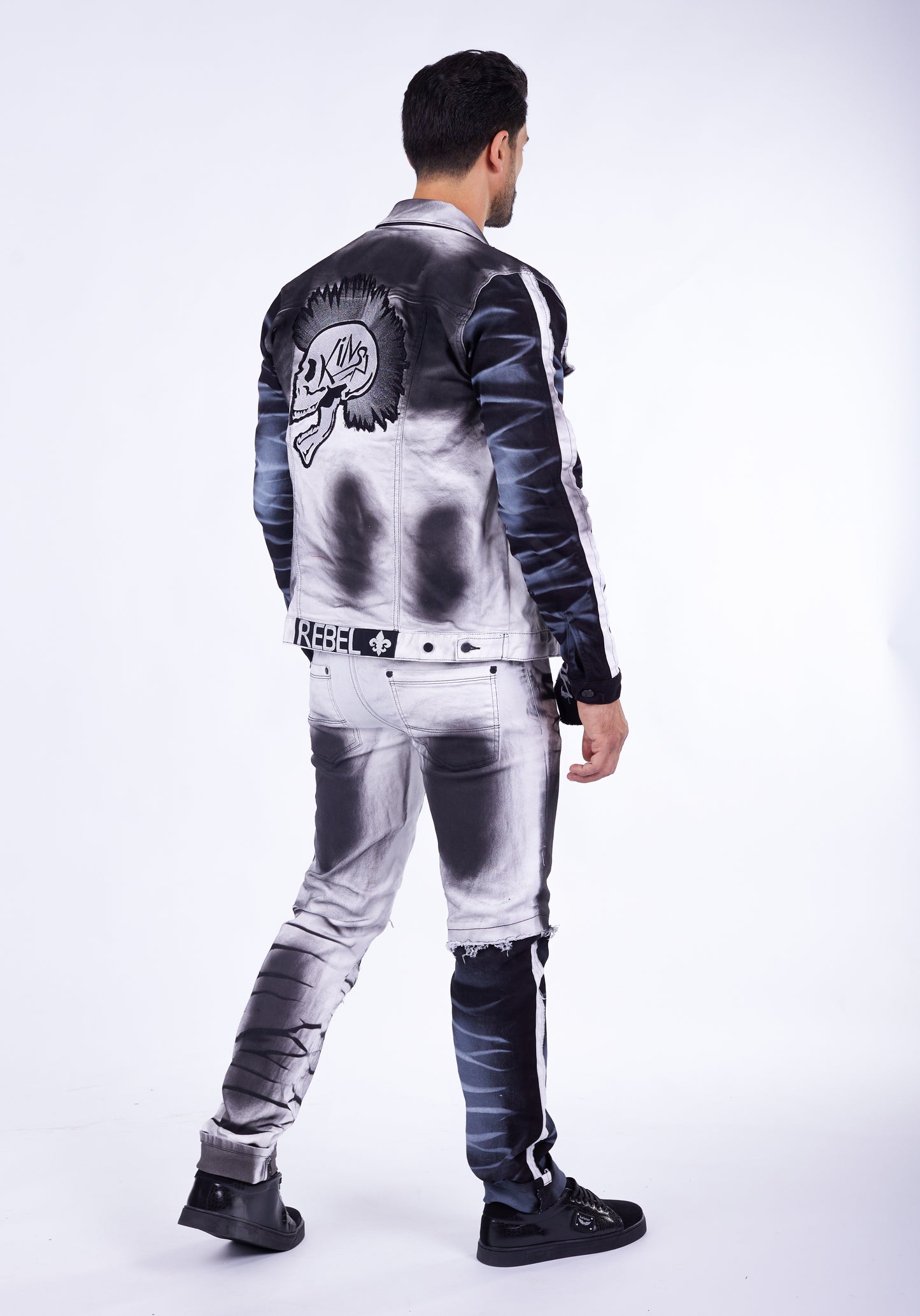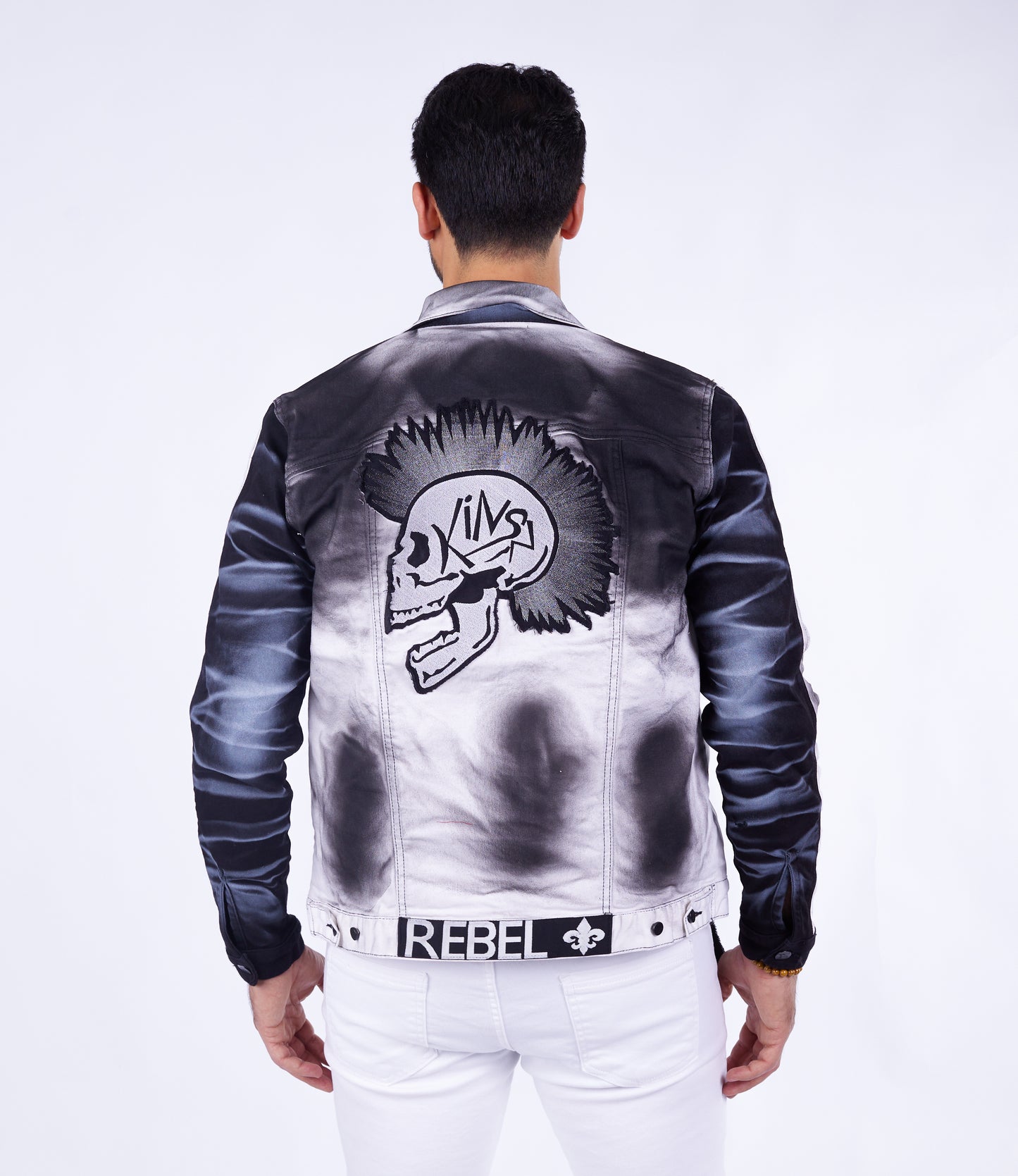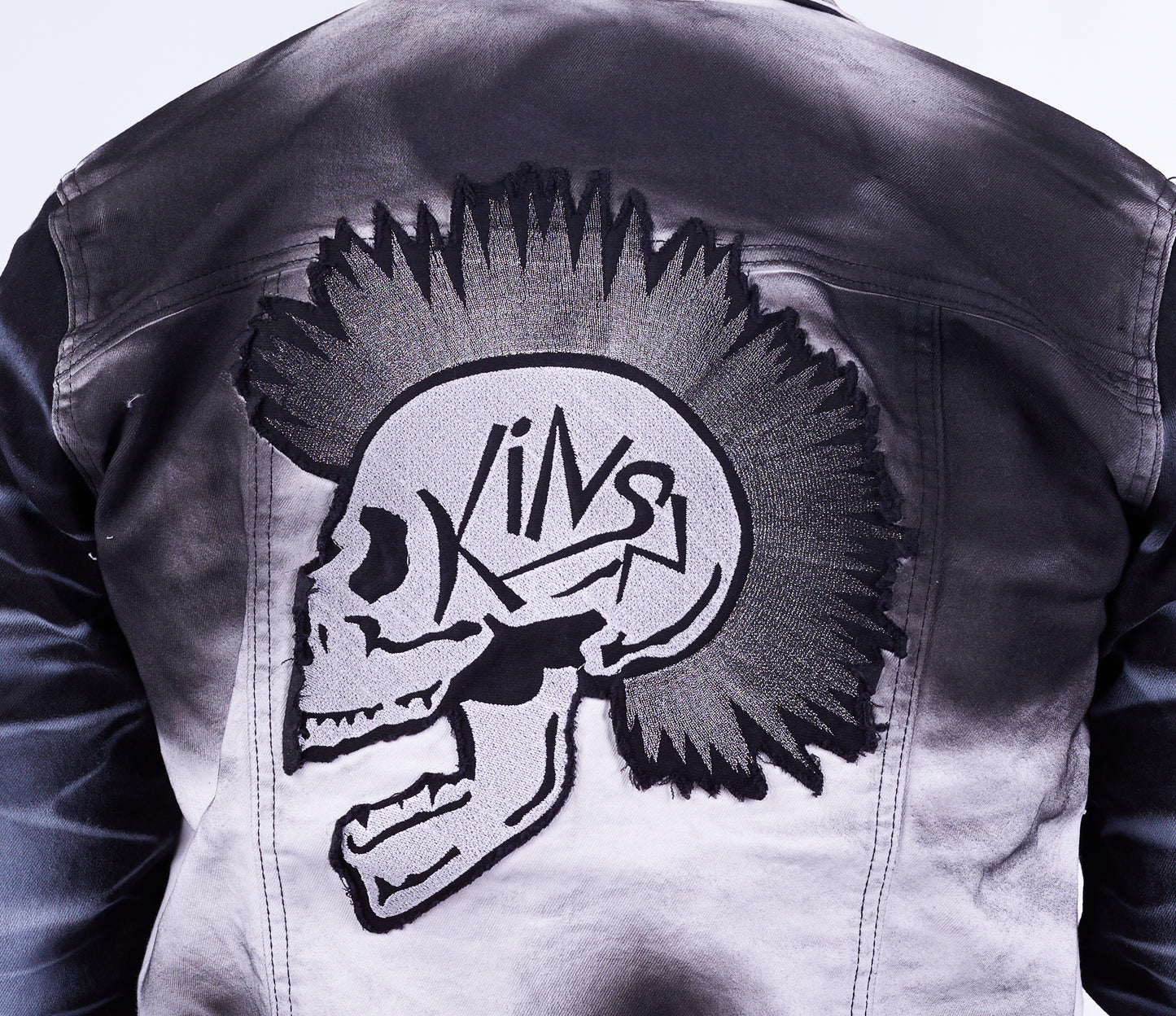 - Eyecatcher Totenkopf-Stickerei: Ein großflächiger, detailreich bestickter Irokesen-Totenkopf auf der Rückenpartie zieht alle Blicke auf sich und unterstreicht deinen unkonventionellen Stil.