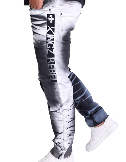 Lässiger Rebell mit Stil – Deine Weiße Batik Regular Fit Jeans von KINGZ