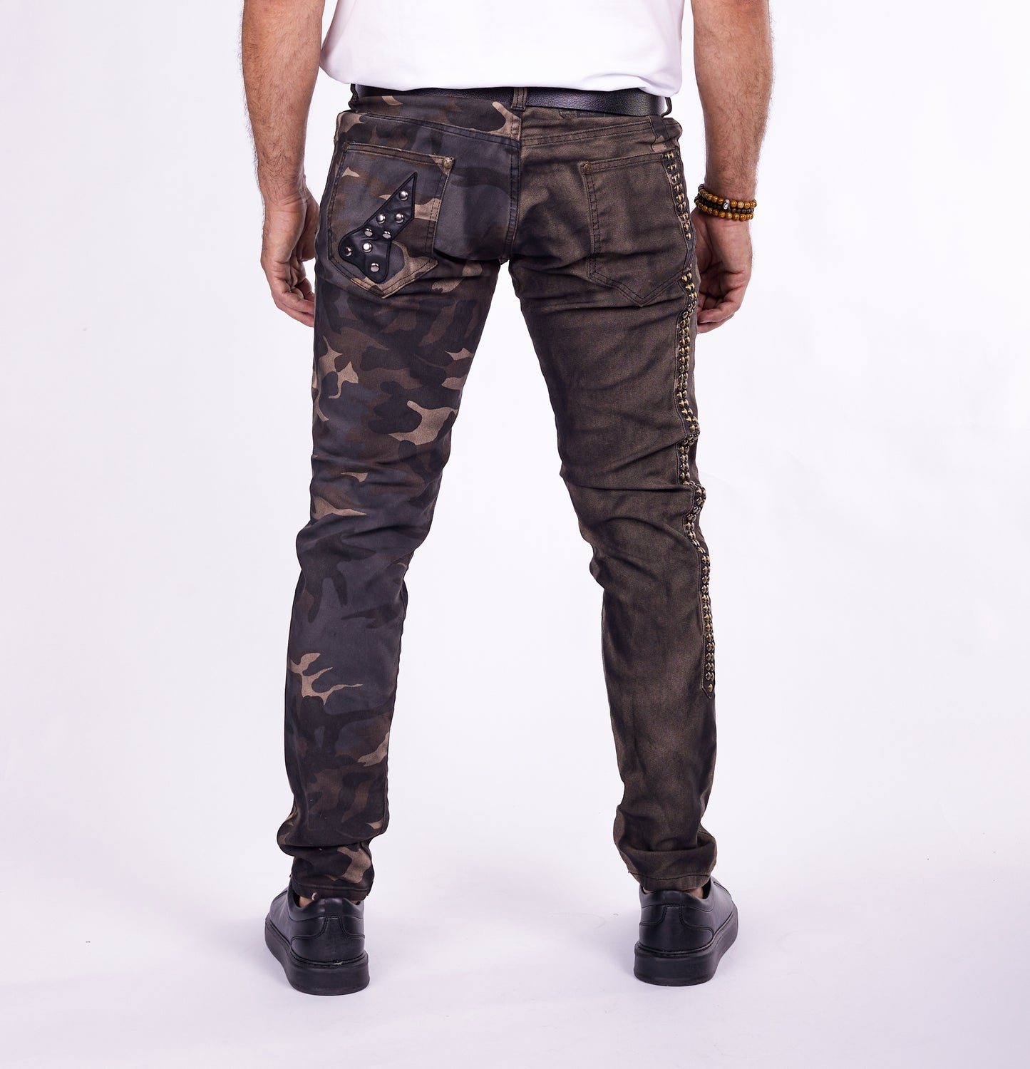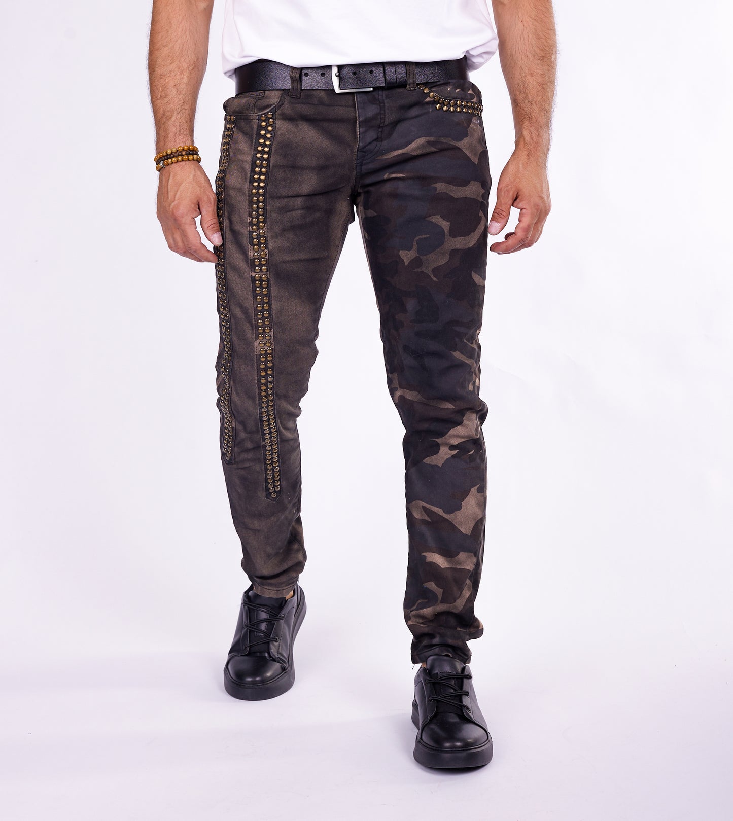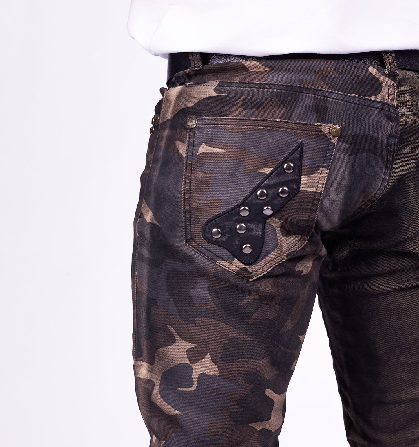KINGZ Herren Slim Fit Jeans im Camouflage-Muster mit Nieten