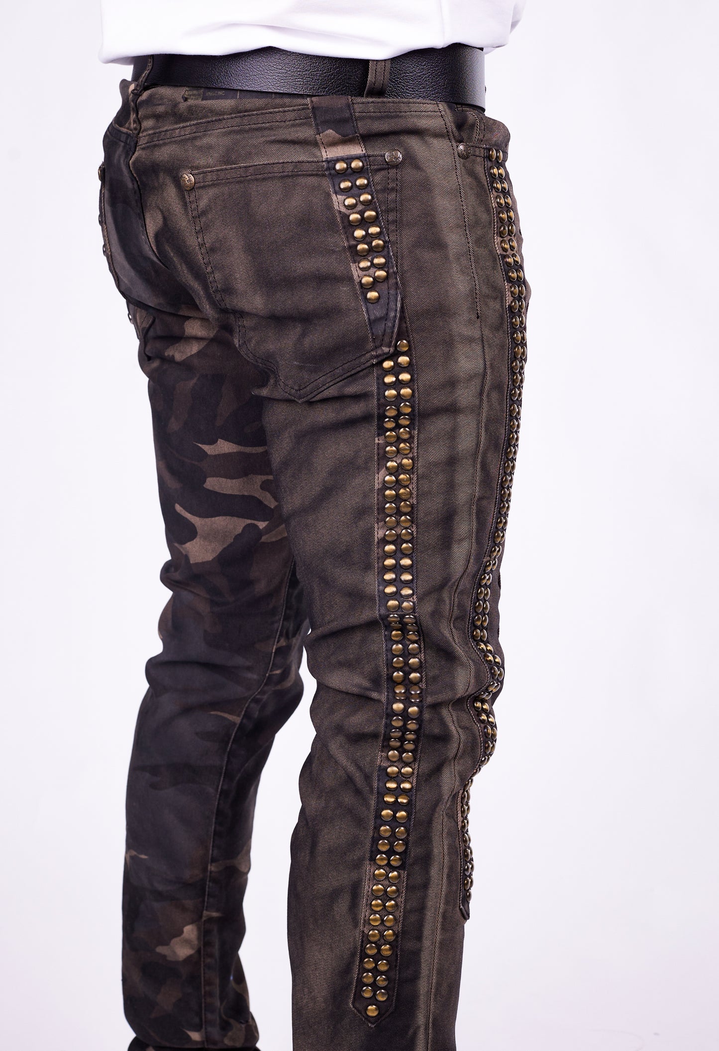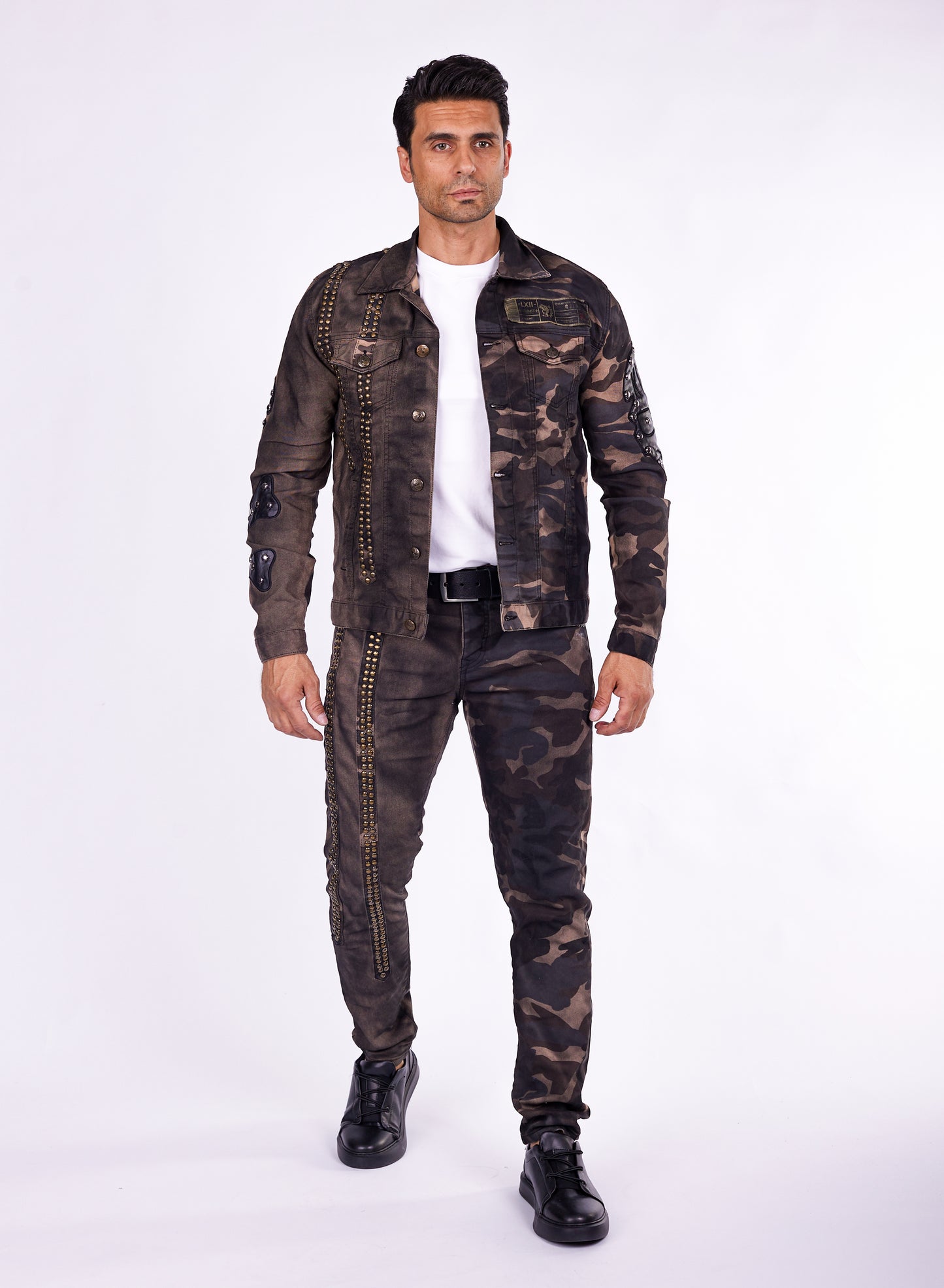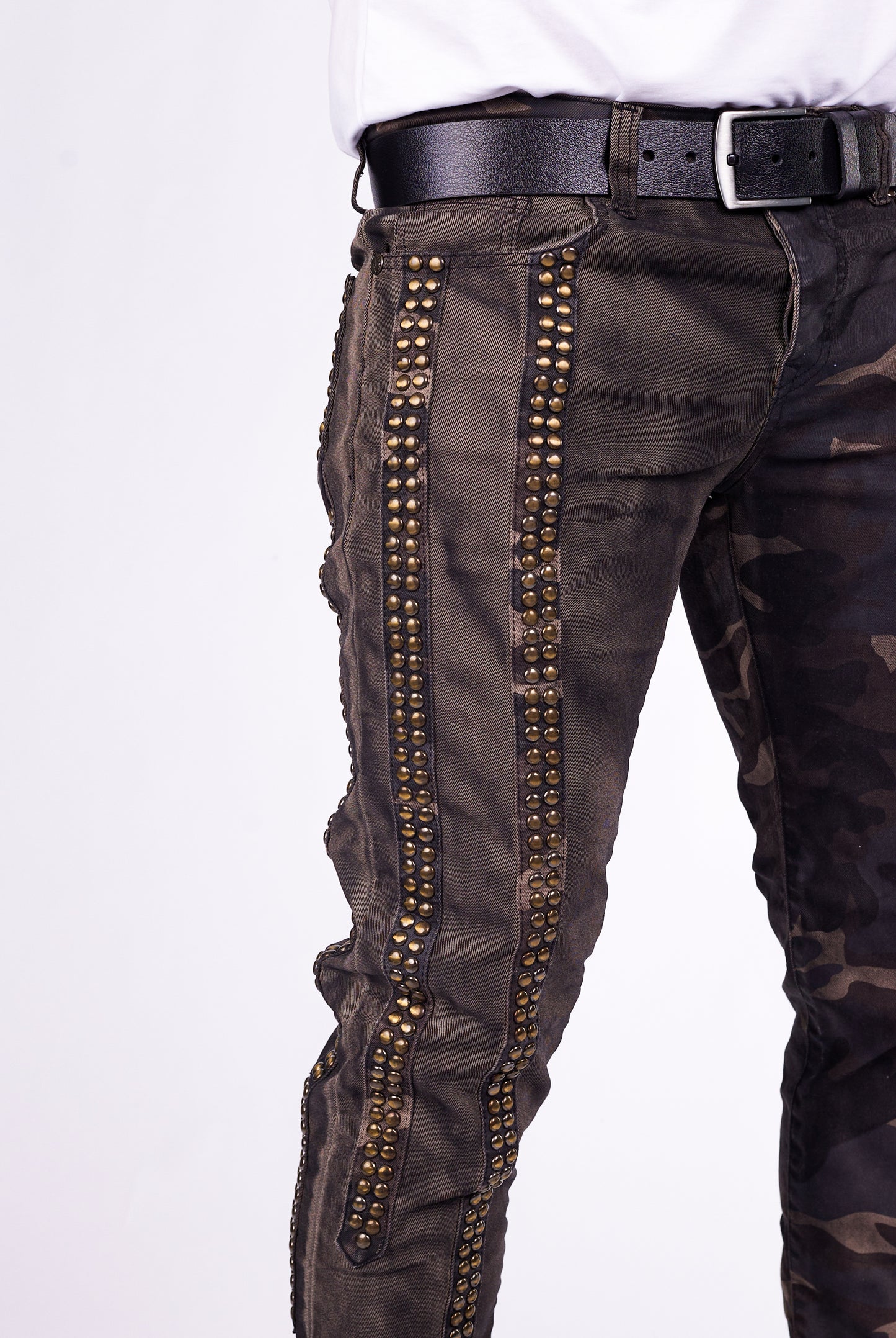 KINGZ Herren Slim Fit Jeans im Camouflage-Muster mit Nieten