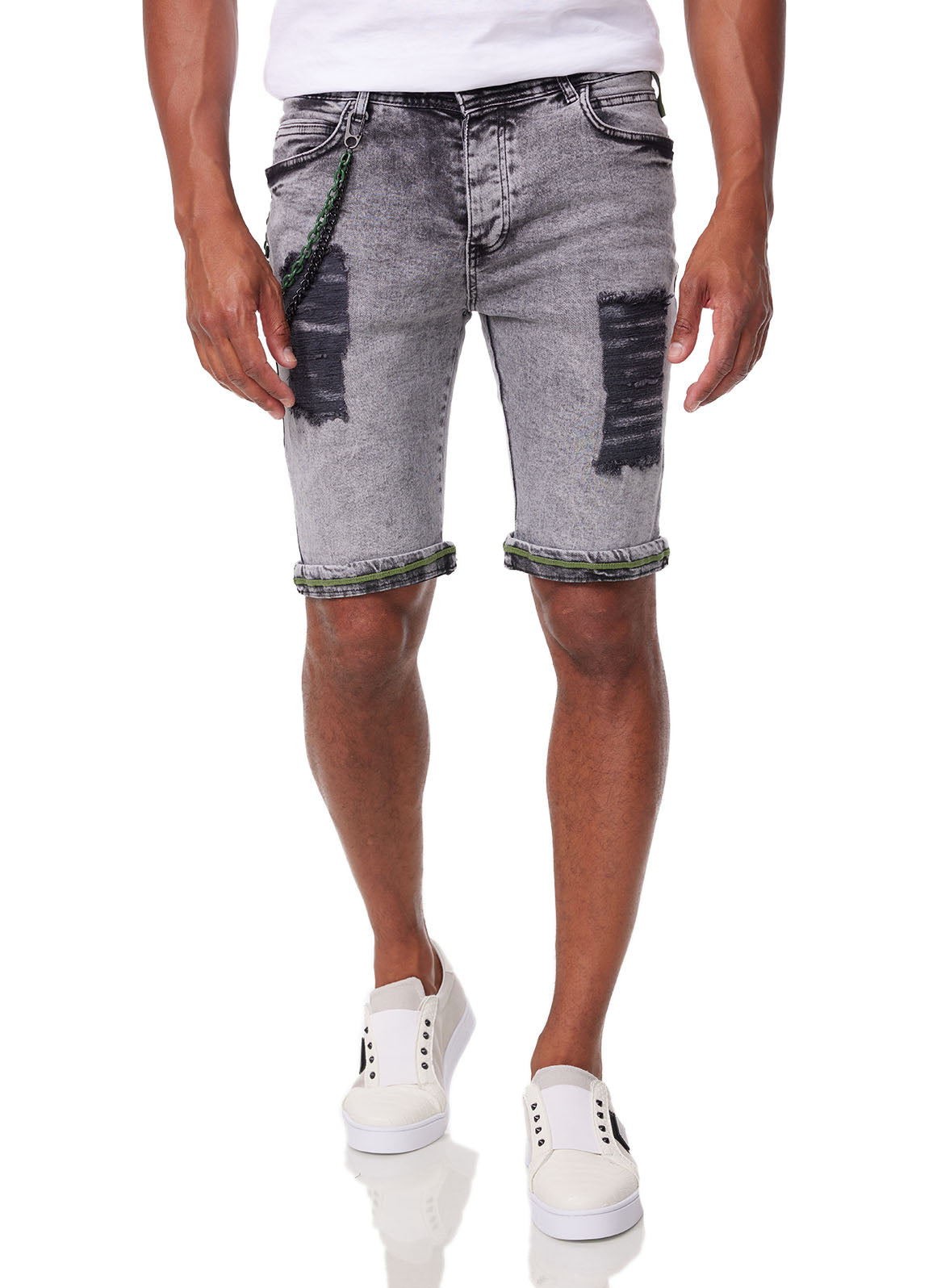Herren Jeans Shorts, Used Look, Regular Fit, Model DH1011, Hellgrau